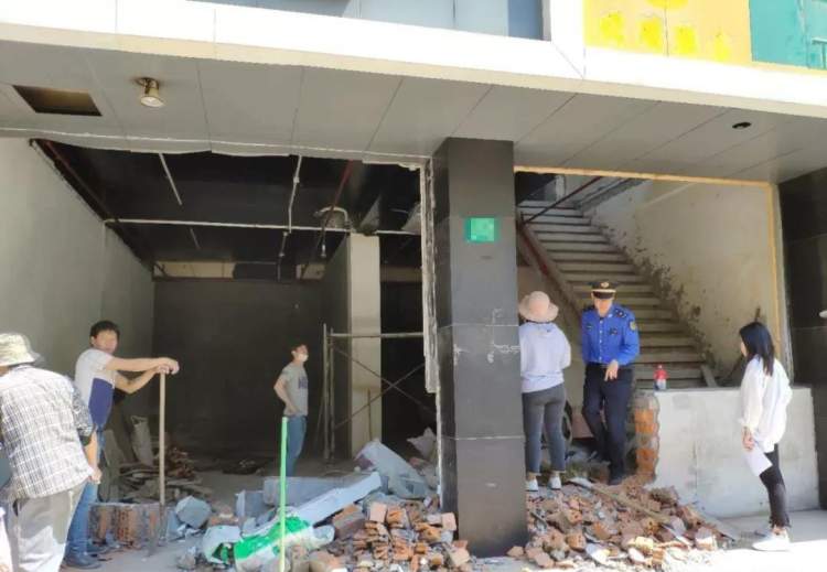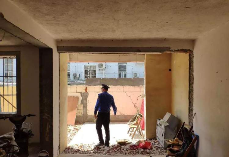 与经营业主取得联系后,执法者告知其存在野蛮装修情况,可能已经破坏了房屋的承重结构,强调此行为的严重后果,要求其积极配合调查,并协助专业公司做好承重墙破坏检测工作。