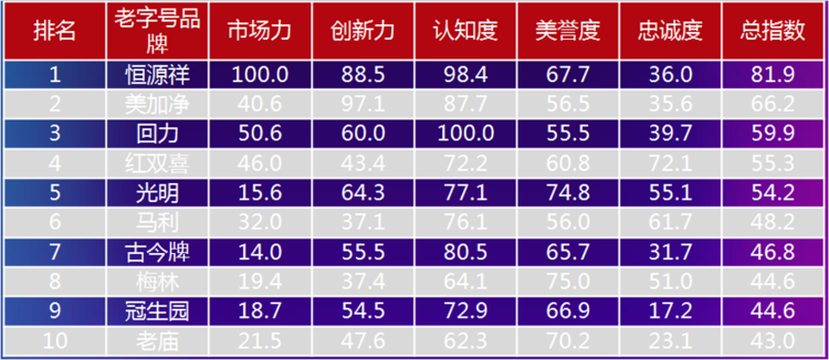 图/老字号品牌指数Top100