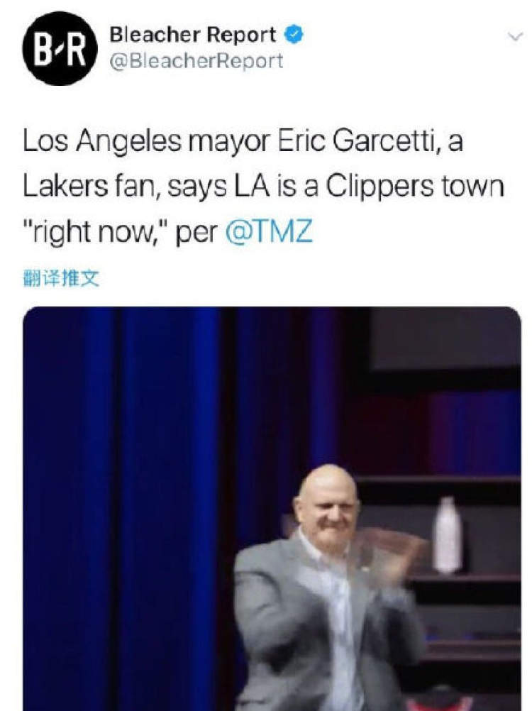 而洛杉矶市长埃里克·加塞蒂在昨日接受采访时,更是直言称现在的洛杉矶不属于湖人队。“现在洛杉矶是快船的城市,我喜欢快船,不讨厌他们,但我始终是个湖人球迷。”