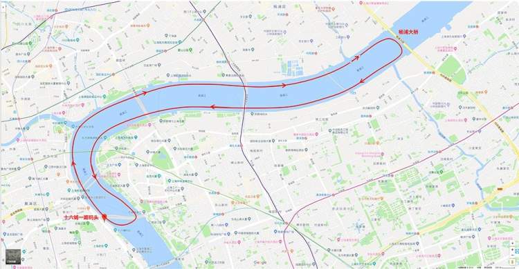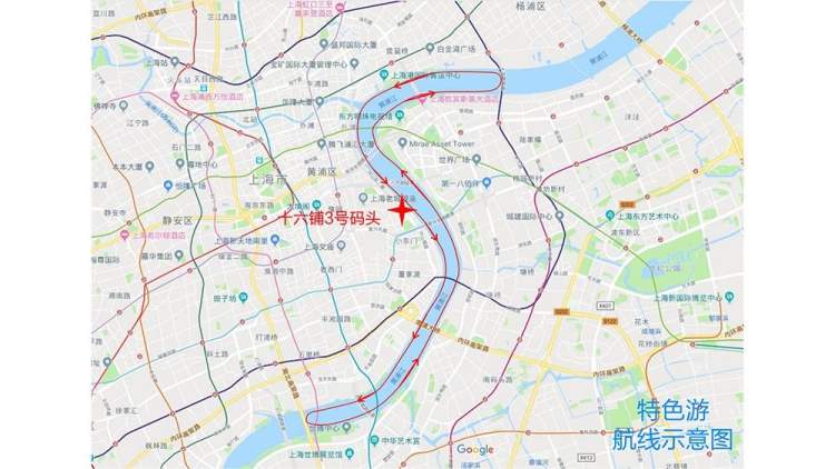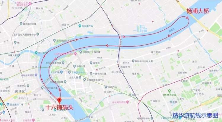 主要航线:十六铺三号码头→近卢浦大桥折返→十六铺三号码头