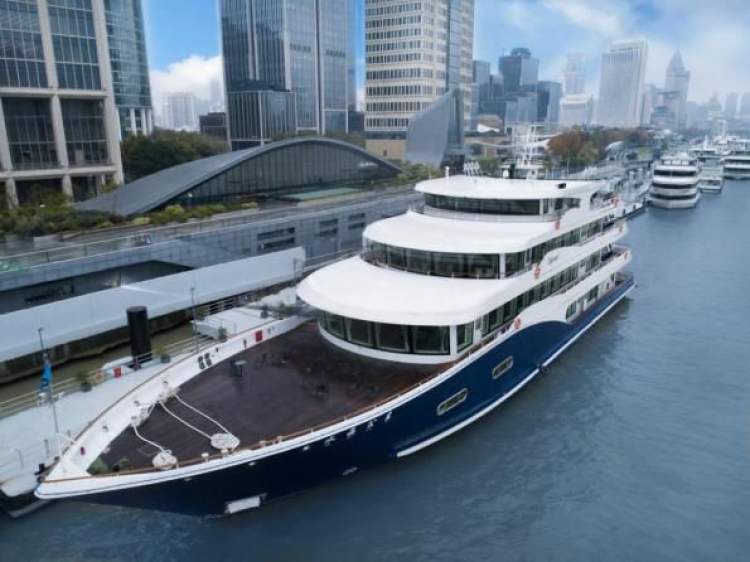↑“君子兰”轮:游船设施高端先进,具备五星级酒店标准,载客量为 402 人。