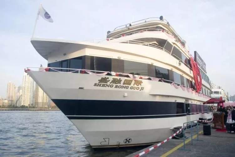 ↑“盛融国际”轮:黄浦江上唯一一艘进口的游船,载客量为 250 人。一至三层为室内,四楼是阳光甲板。