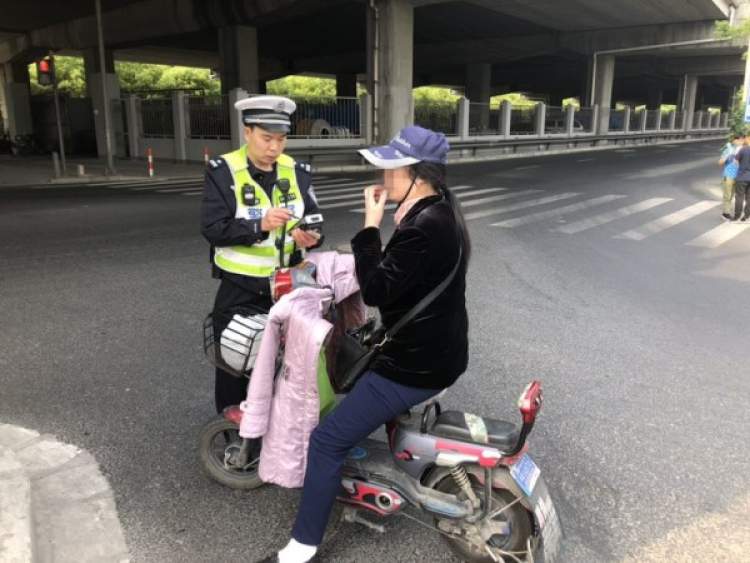 5月11日,闵行交警在中春路沪渝高速辅道,拦下一辆越线等红灯的电动车,并对当事人张某某处以30元罚款。
