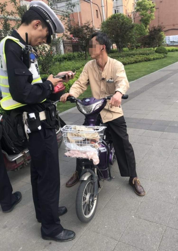 5月11日,虹口交警在四平路海伦路路口,发现一辆在人行道上骑行的电动车,民警立即将其拦下,并对当事人李某实施的“非机动车未在非机动车道内行驶”的违法行为作出罚款50元的处罚。