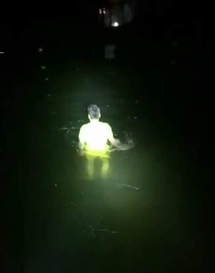 ▲韦茂朗在水中搜救