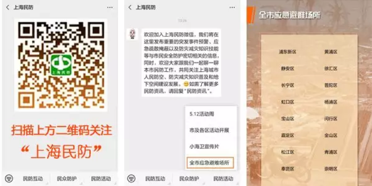 想要快速查看全市应急避难场所的位置,小伙伴们可以关注“上海民防”公众号,点击“全市应急避难场所” ↓↓