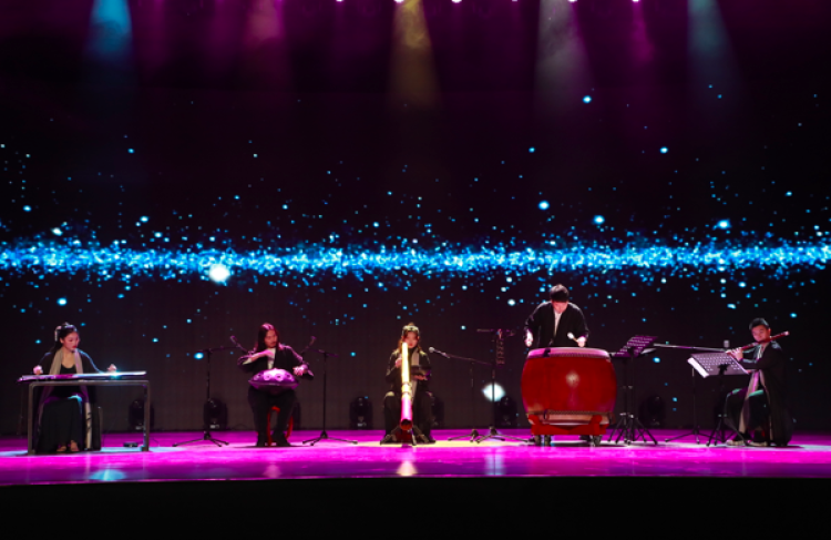 相比专业院团的一台台大戏,群文作品虽然短小精悍,却角度新鲜独特。在民乐重奏《和·鸣》里,中国的古琴、口弦、竹笛、大鼓,澳洲的迪吉里度管,瑞士的手碟,非洲的沙克……这些来自不同国家不同民族的乐器在同一个舞台上隔空对话,如此和谐。演出的灵感来自一户普通爱乐之家,这户四口之家常常在屋里拿起各式各样的新奇乐器,吹拉弹唱,即兴开起一台小型音乐会。