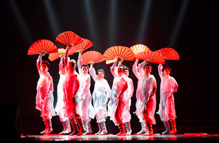 火红的扇与穗,犹如中华儿女身上流淌着的滚烫血液,顽强奔腾,群舞《红韵》以短短几分钟的舞蹈点燃了台下所有人的心。细心的观众会发现,舞台的四角,站着四位指导员,他们手中不断打着节拍,跟着音乐时而激昂,时而舒缓。原来,台上的舞者全由上海市残疾人舞蹈团的听障人士组成。五分钟的舞蹈,每一个节奏点,每一个变化,他们都只能“以视代听”,在心中默默数着节拍,“只要有一个人换了,大家就要重新记节奏”,编导於沁心深知这一台作品的呈现有多么不容易。