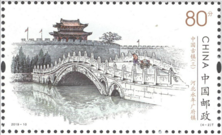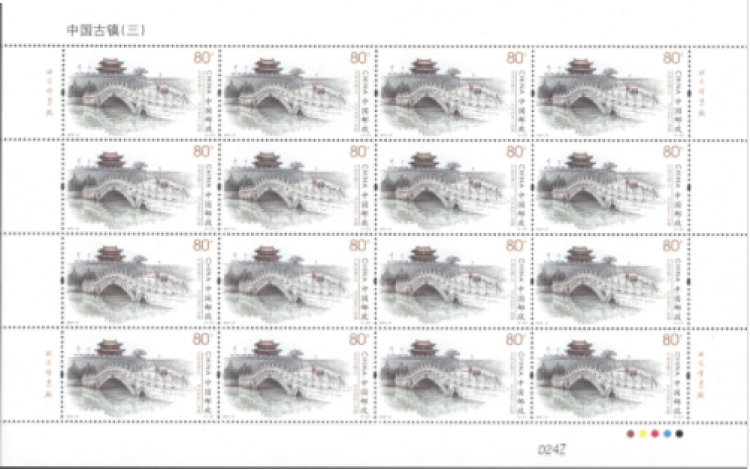 本套邮票为《中国古镇》系列第三组,展现了天津西青杨柳青镇、河北永年广府镇、浙江江山廿八都镇、湖南永顺芙蓉镇。