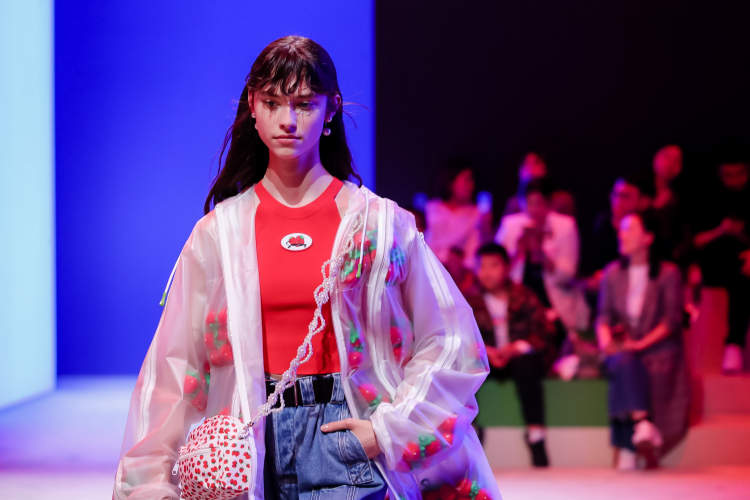 此次秀场的灵感来自于光合作用,采用了生机盎然的自然颜色进行填充,并选取光了合作用里自然万物的朝气绿,活力粉,跳跃橙,打造出鲜明且丰富的多色空间。与人气潮牌OPENING CEREMONY的联名系列中,也采用了用安迪沃霍尔的复古波普色彩来搭配主要的草莓元素。