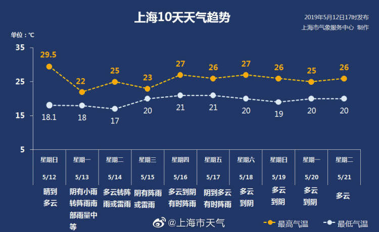 在连续“上岗”好几天后,明天太阳有开始“休假”了。上海市气象局发布的未来10天天气趋势图显示,下周的工作日都被阴雨天气承包了!还可能伴随雷电。