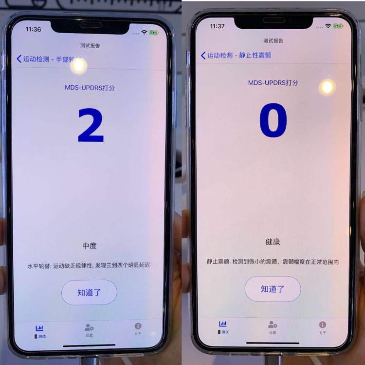 此外,让周到君印象最为深刻的,可能是帕金森运动评估软件。人们只要摇晃手机15秒,以及静止状态下,拿着手机15秒,就能检测自己得帕金森病的可能性。这也能让患者使用普通智能手机,在家也能完成病情的日常评估。