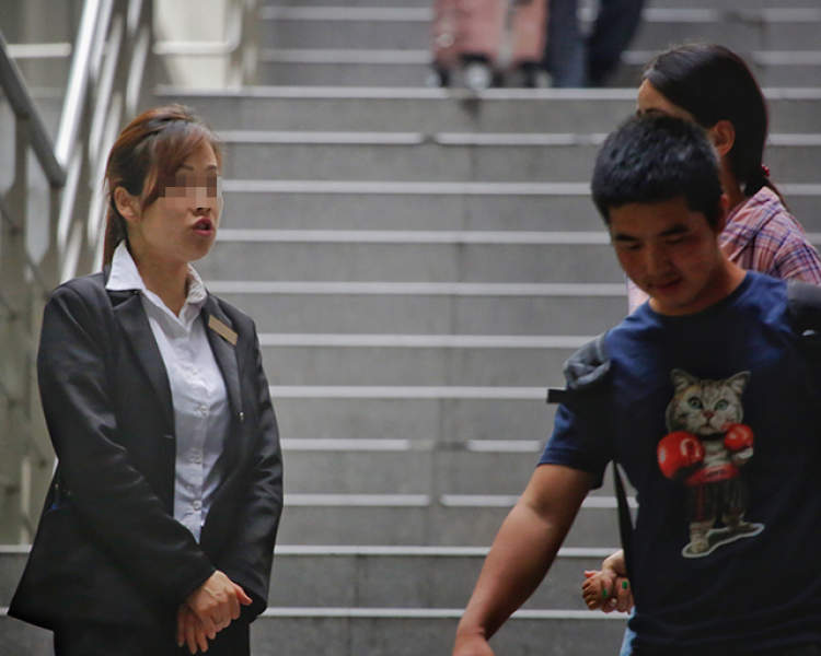 在P9停车库的楼梯出口处,有几位胸前佩戴着“上海虹桥”字样胸牌的人站成一排,胸牌的材质有的是金属,有的则是塑料,有人穿着西装制服,有人穿着与地铁工作人员极为相似的粉色衬衫,他们手里清一色拿着对讲机,朝着刚到站来到停车库的乘客们吆喝到:“不要走错了,出口在这边。”然后挥手引导,指向身后的出口。