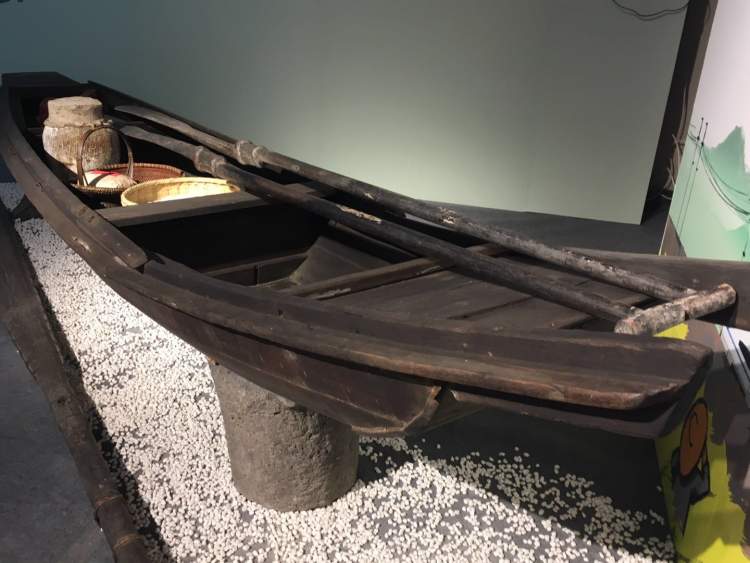 展览起首就布置了一艘原汁原味的乌篷船,作为装置来引导视觉,视频短片展示了江南各地的山水、特产、风俗等。