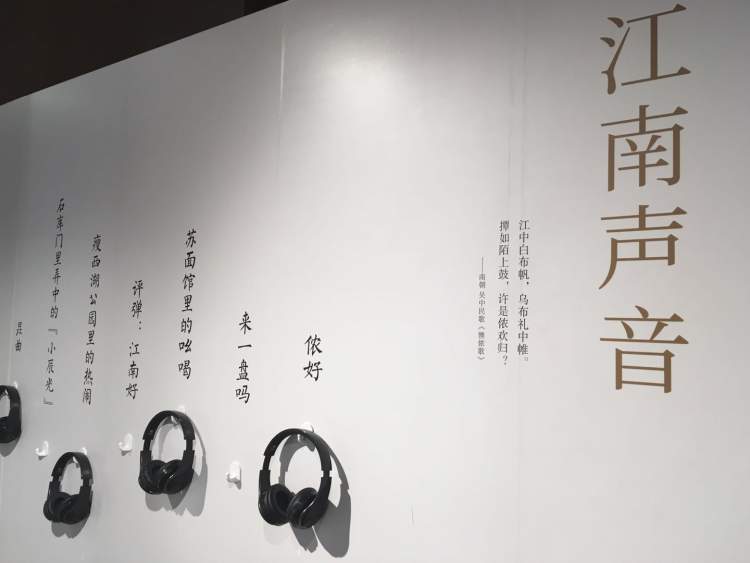 “江南声音”重点展示吴语、吴音、吴乐的元素,你可以听到江南各地采集而来的民间市声。“影像江南”部分播放着经典电影中的江南意像。