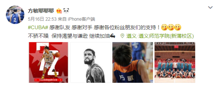 与此同时,对于自己的表现以及网上一片惊叹赞美,方敏也谦虚地表示,“感谢队友,感谢对手,感谢各位粉丝朋友们的支持!不骄不躁,保持渴望与谦逊,继续加油!”有趣的是,方敏在配图的时候选择了4张照片,其中3张是自己,而另一张则是她的偶像欧文。据悉,在中南大学,很多学生都称呼她为“女版欧文”。