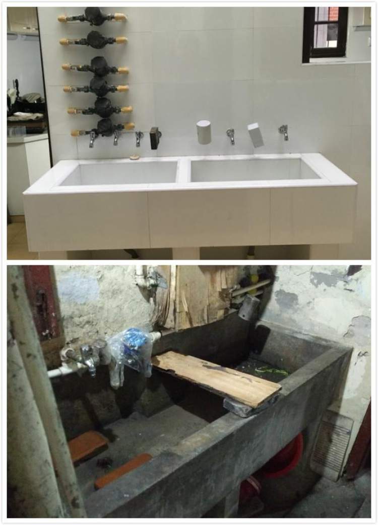 走进贵州社区任何一栋居民楼,没有独立的煤卫,共用厨房,一个个水龙头,一个个煤气灶,只有居民自己搞得清是哪一户的;每一扇门背后,就是一户家庭,蜗居在十来平方米的房间里。