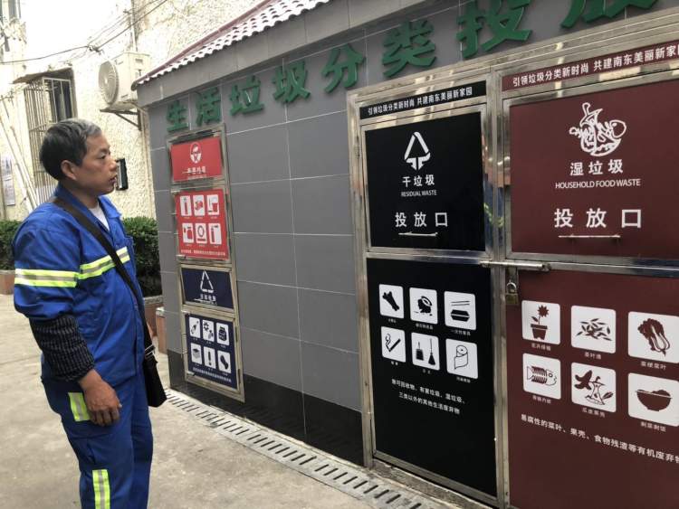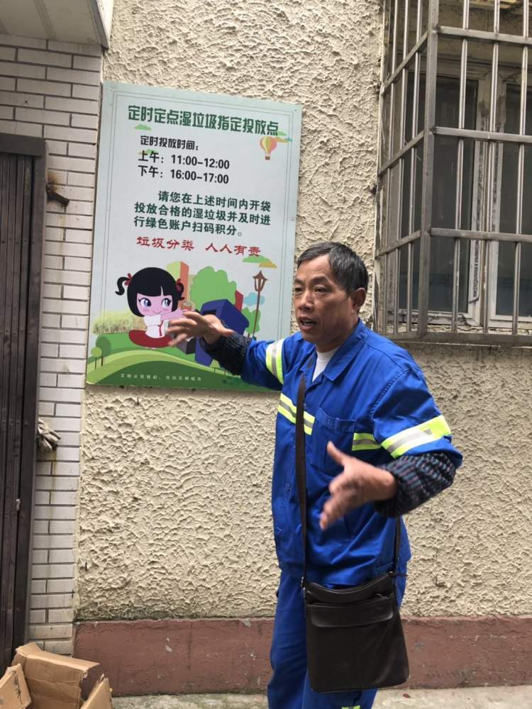 每天中午11点,同样无论刮风下雨、严寒酷暑,浙江人李辉凯都会准时出现在垃圾箱房附近,为准确分类投放垃圾的居民,扫描绿色账户,进行积分。在担任绿色账户扫描员之前,他是这一带的保洁员,一待20多年。