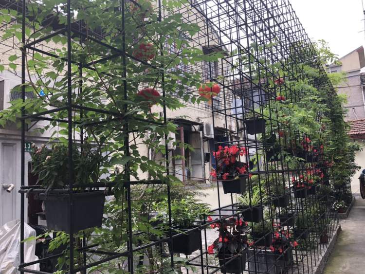 弄堂里,搭起了花架、花廊,花廊上攀爬着绿植,花架既可以摆放盆栽,也供家中常年缺少阳光的居民晾晒衣物。弄堂里,还开辟了一个“共享客厅”,配置了冰箱、微波炉,居民都可以进来嘎三胡,墙上,哪个居民负责哪些居民开展垃圾分类,任务都已经明确。