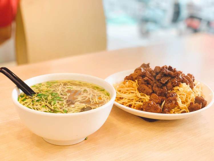 一碗辣肉冷面,配上一碗鸡鸭血汤,就算齐活了,开吃!