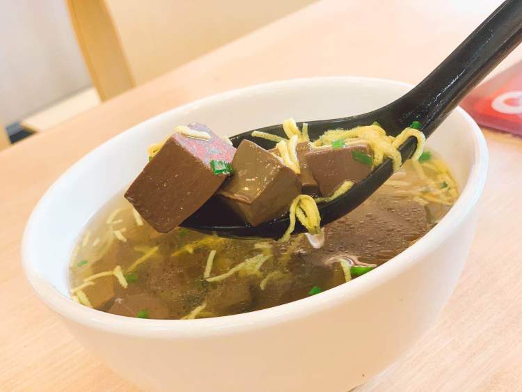 鸡鸭血汤的料超足,周到君还在里面找到了5片鸭胗!汤里的蛋丝不但为整碗汤增色不少,更是提了味,整碗汤鲜香可口。
