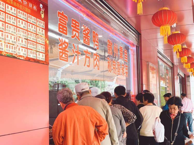 周到君到大富贵那会,虽然已经过了饭点,但门口的熟食窗口和旁边的点心窗口依旧有食客排队购买。