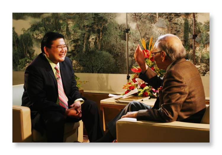 这个主意果然奏效,贝聿铭被请进采访间时,忍不住批评学生“自作主张”,但看到现场布置一切齐全,修养极好的他还是坐下与曹可凡对话。