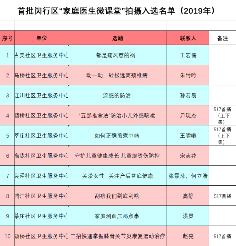 5月17日,由上海市闵行区卫生健康委员会发布家庭医生微课堂!
