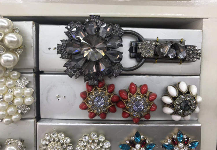 这只blingbling闪的纽扣是搭配在皮草上的,上面的水钻也是尽兴挑选了上乘的产品,“不勾衣服也不刮皮肤。”这就是优质和劣质的区别。