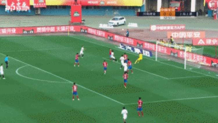 上港队的致胜进球也的确源自一个前场定位球,奥斯卡开向禁区被顶出后,艾哈迈多夫再度往禁区内传球,胡靖航在中路接于海后点传中头球一蹭,埃尔克森乱战中伸出一脚将皮球踢进了球门。