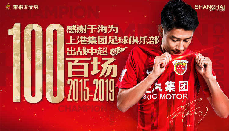 本场中超比赛,还是上港队后防中坚于海代表上港集团足球俱乐部出战的第100场中超联赛。