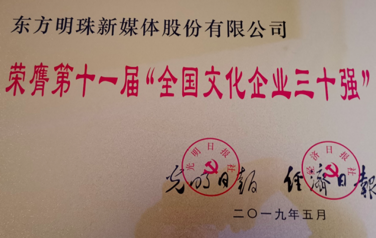 文博会期间,第十一届“全国文化企业30强”也同步揭晓,东方明珠连续第八年获此殊荣。