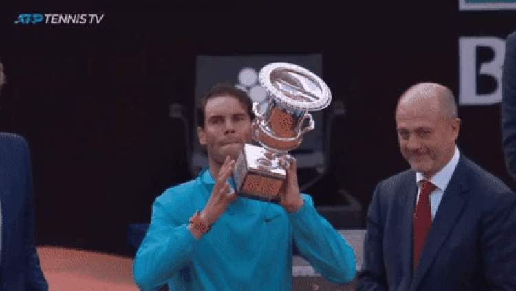 纳达尔在蒙特卡洛、巴塞罗那和马德里都未能冲出半决赛,今天终于如愿夺冠。