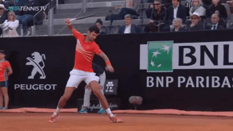 面对如此糟糕的状态,德约又砸起了球拍。