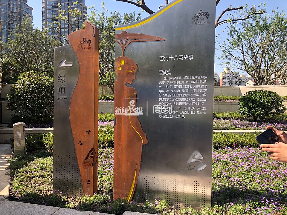 “位于叶家宅桥两侧,这里是上海纱厂最为集中地区,湾内有苏州河上唯一的一座双曲拱梁人行桥——宝成桥,因而被成为宝成湾。又因为这里曾经纱厂云集,也被称为”纱厂湾“。至上世纪20年代,宝成湾区域形成规模庞大的纺织企业群,这里是我国纺织工业的摇篮何高密度聚集区,占到全国纺织业20%,是上海最重要的纺织工业集中区;解放后,上棉一厂、六厂、七厂等企业,又在这里形成了一个纺织集群。上海纺织厂旧址,曾经中国纺织业的五分之一就在这里。”