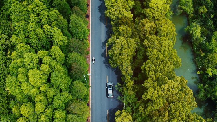 临海而筑的沪杭公路连接上海和杭州,因路两旁绿树成荫、风景如画,被誉为“最美公路”。