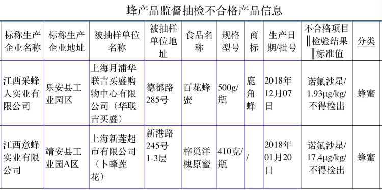 今天,上海市市市场监督管理局公布了本市最新食品安全抽检结果。在729批次抽检样品中,有4批次食品不合格,包括谷粉、油豆腐、蜂蜜等。其中2批次蜂蜜中检出了已被禁用的兽药。