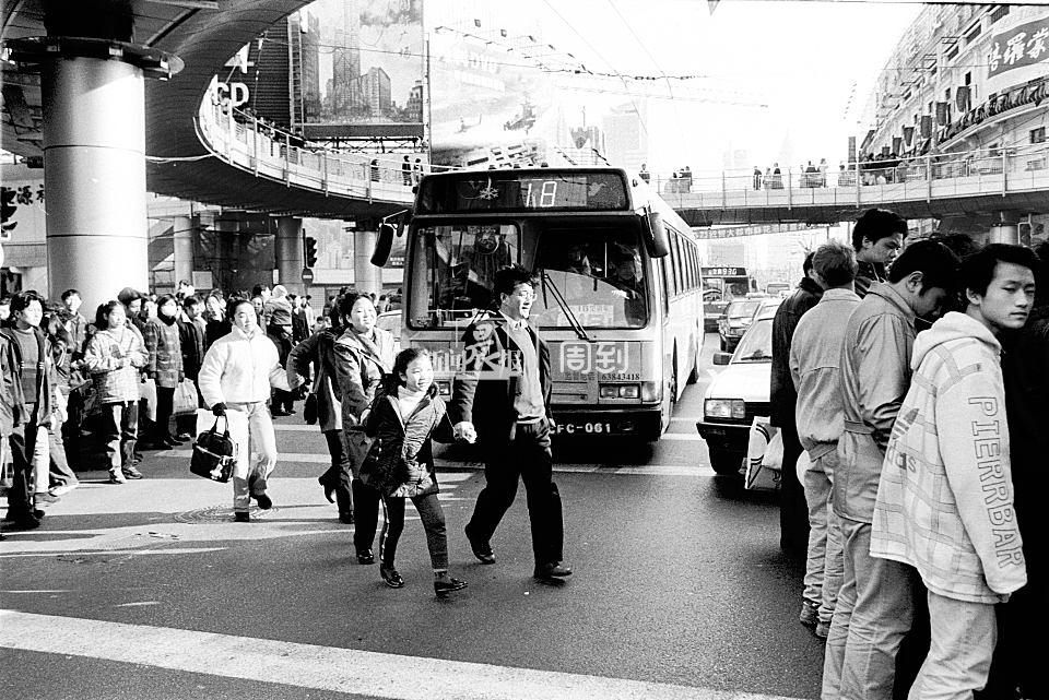 2000年冬天,不少游客不顾来往车辆穿越西藏路,更有大胆者在车辆夹缝中穿过。