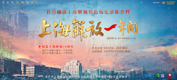 庆祝上海解放70周年的重点纪录片《上海解放一年间》将在5月27日登陆东方卫视黄金时段。该系列纪录片首次披露上海解放彩色历史影像资料,以故事化的方式挖掘历史细节,通过重温上海解放一年间的历史。