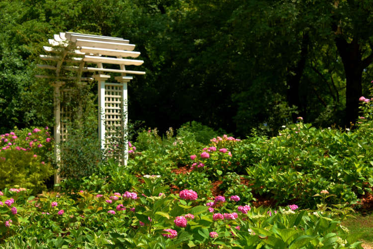 作为上海首个八仙花专类主题花园,共青森林公园的八仙花园位于公园中心区域,花艺馆东侧,占地5000余平方,集观花、休闲、科普于一身,设有品种展示区、观景区、休闲区等,四周常绿乔灌木围绕,空间独立幽深,碎石小径通幽,地形起伏优美。
