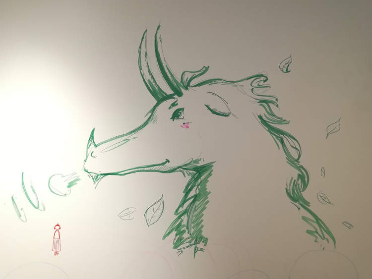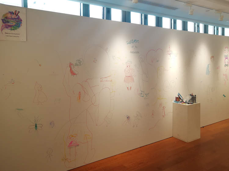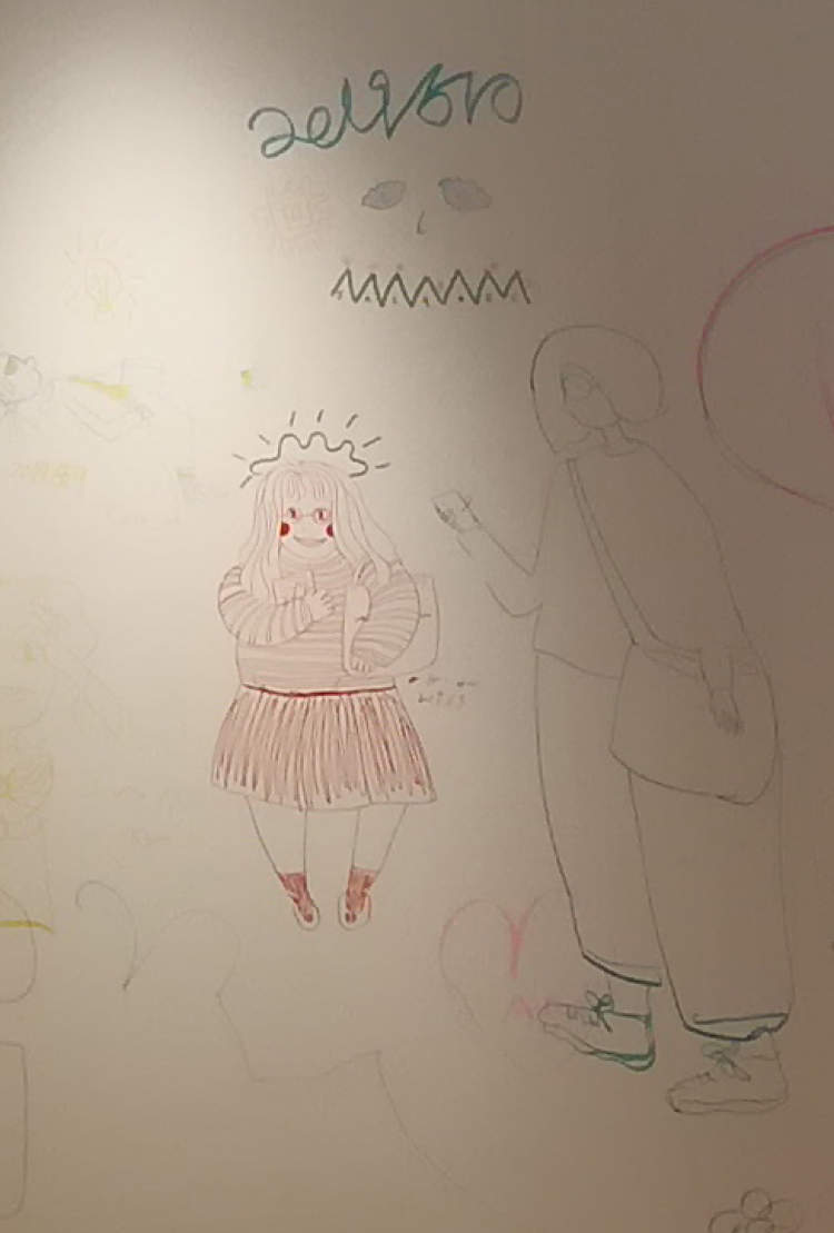 展厅的手绘区可以说是这个插画展的一大亮点了,工作人员也贴心地提前准备了画笔。这给参观途中“童心发现”的参观者们准备了一个大显身手的机会。