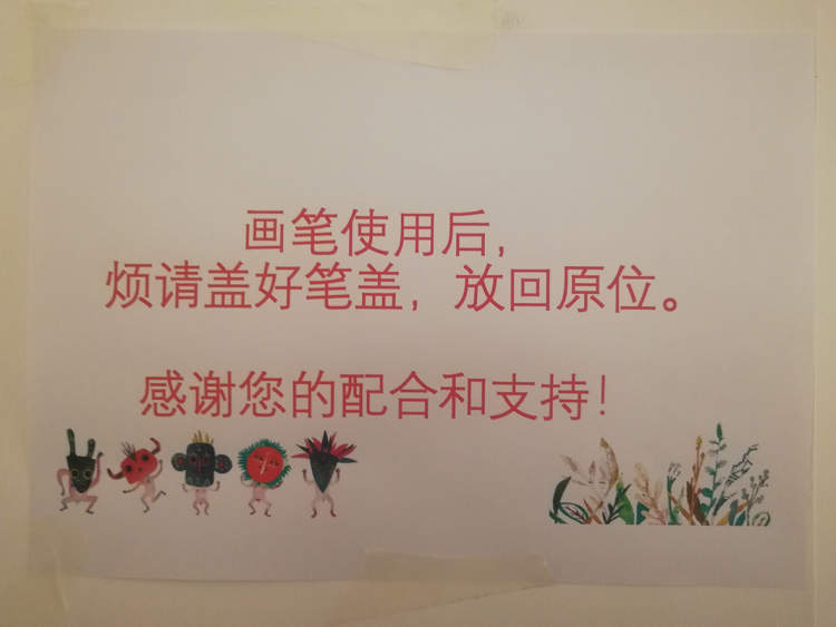 享受绘画的同时,还是要记得画完之后按照张贴的提示把笔盖盖上放回原处才行呀~