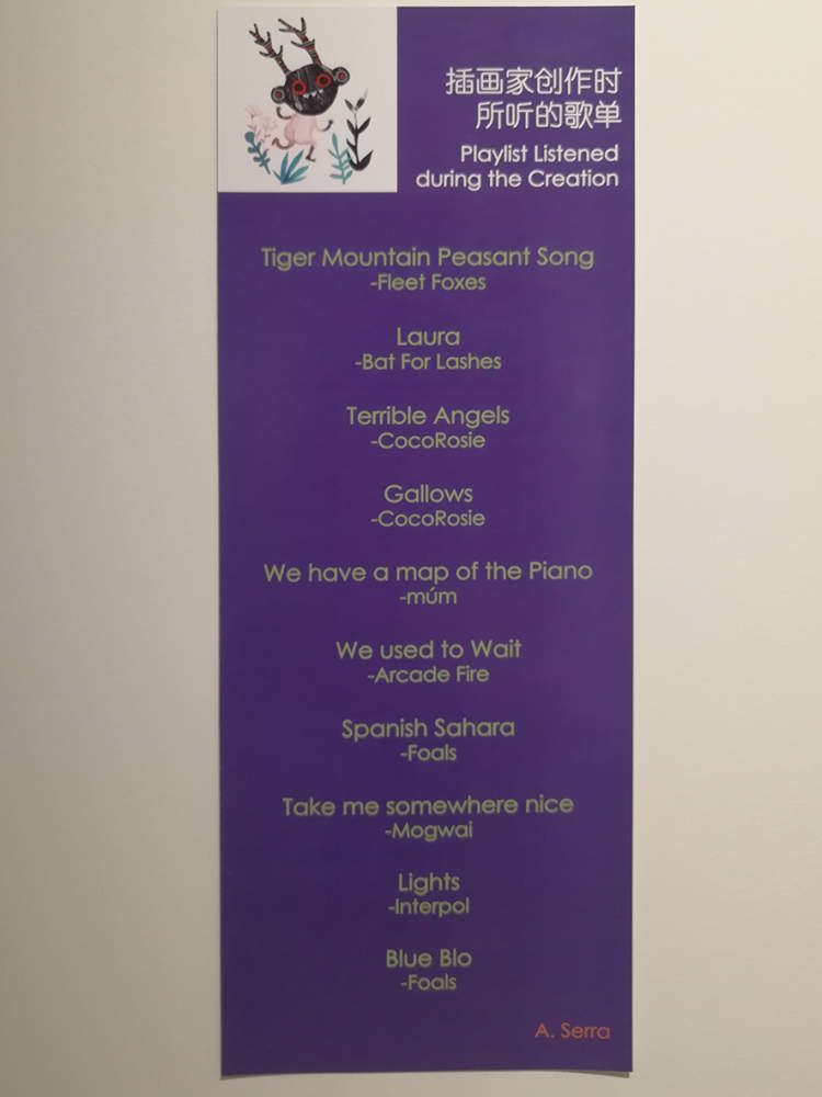 每个房间里都贴着作者在创作时听的歌单,馆内的音响播放的音乐也都出自这些歌单。在某种成程度上将也是观众与作者创作时的心境拉近了些吧。
