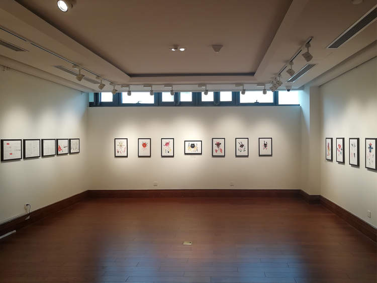 整个场馆布置十分简,洁白色的墙上挂着一幅幅插画。
