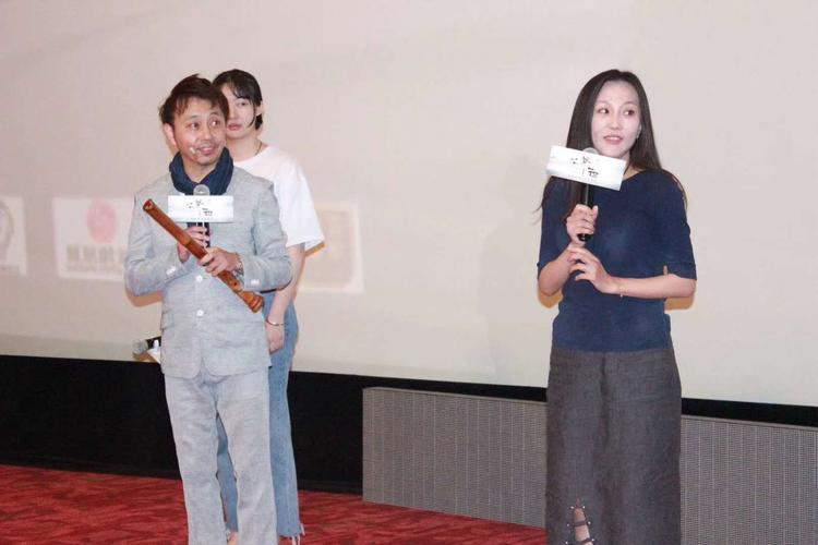 ■尺八演奏家佐藤康夫(左)和导演聿馨(右)在上海千人首映场