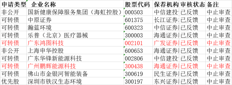 同时,截至5月23日再融资申请公司中,11家中止审核,除了怡球资源是自身被调查而中止外,其余不少也由于正中珠江的原因。其中广东鸿图和鹏辉能源24日晚已经公告。广东鸿图(002101)披露,公司本次可转债项目聘请的审计机构广东正中珠江会计师事务所被证监会立案调查,目前尚未最终结案。证监会根据有关规定,决定对公司发行可转换为股票的公司债券申请中止审查。