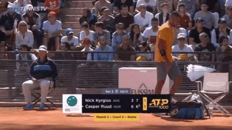 在罗马站与挪威球员鲁德比赛时,克耶高斯向现场球迷咆哮以发泄不满,并砸拍子和将椅子扔到场地内。