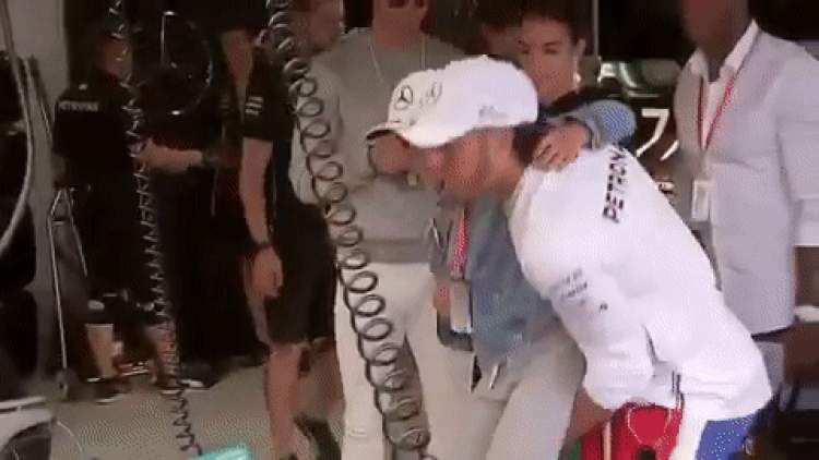 作为足球巨星,C罗自然受到了终极贵宾的待遇,带着一家人来的他不仅近距离参观了梅奔车队的车库,与汉密尔顿畅谈,迷你罗更是被汉密尔顿抱着坐进了F1赛车内。