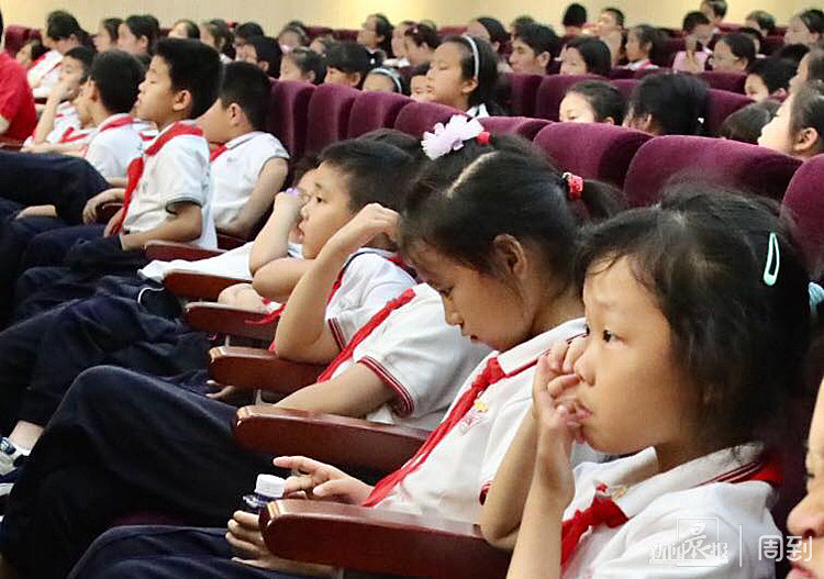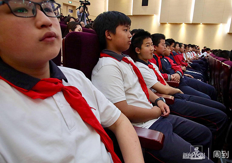 查学雷站在舞台上问着底下认真聆听的数百位学生,学生们纷纷举手,跃跃欲试的准备发言,一位佩戴着红领巾的小男孩大声的回答到:“翟志刚”。
