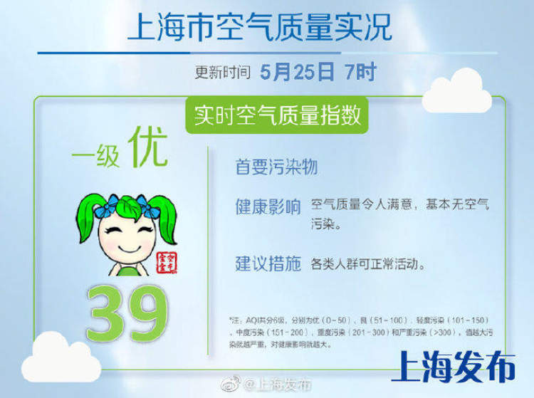 今天白天没有雨,赶紧出去逛逛或者在家洗洗晒晒吧。空气质量也不错,今早空气质量优,实时指数39。